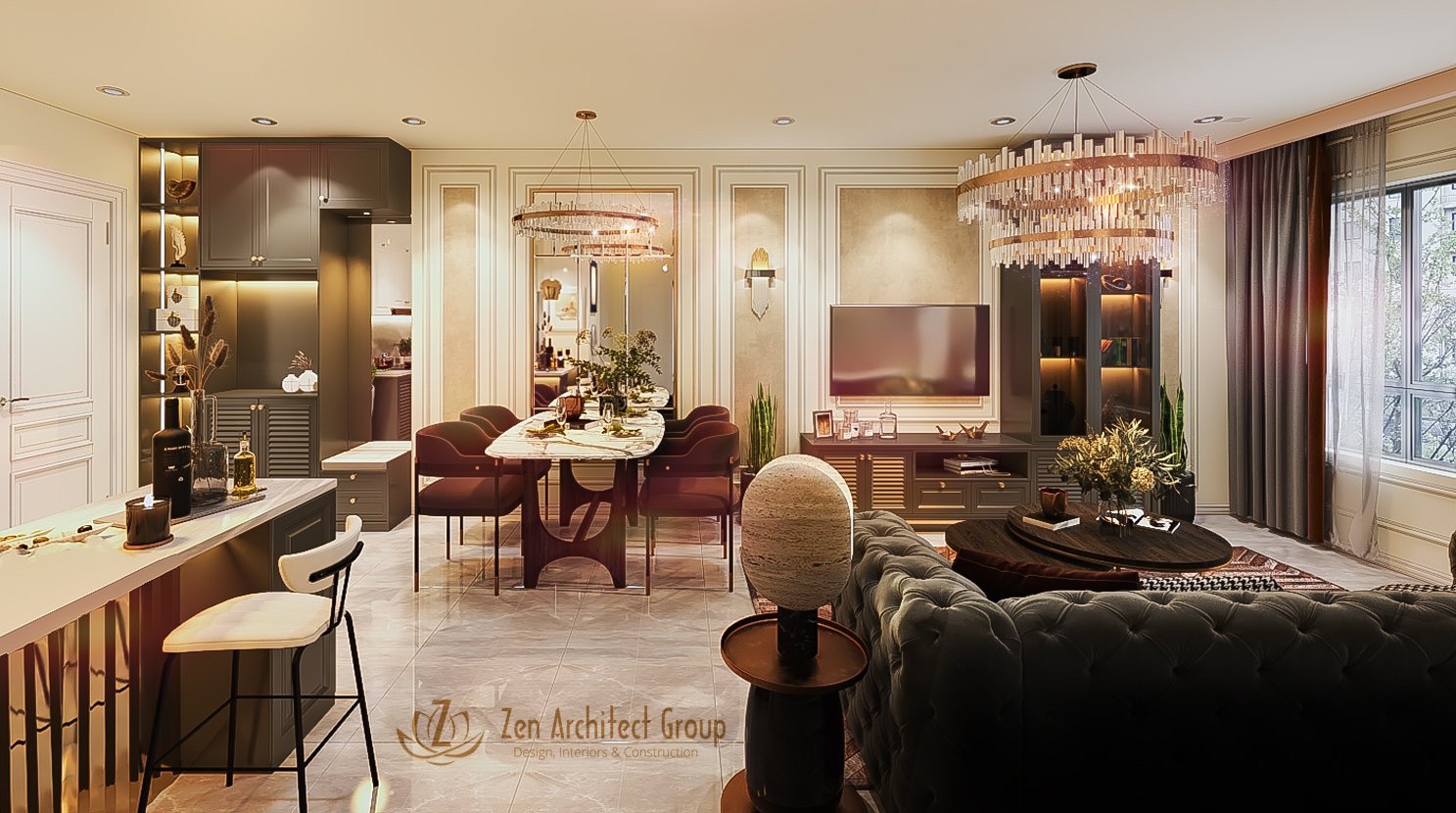 ZEN architecture chúng tôi với tôn chỉ luôn đề cao sự hoàn hảo từ những điều nhỏ nhặt nhất . Không gian sang trọng , tỉ mỉ từng chi tiết cùng gam màu trầm tính sẽ mang lại cảm giác ấm cúng cho gia đình .